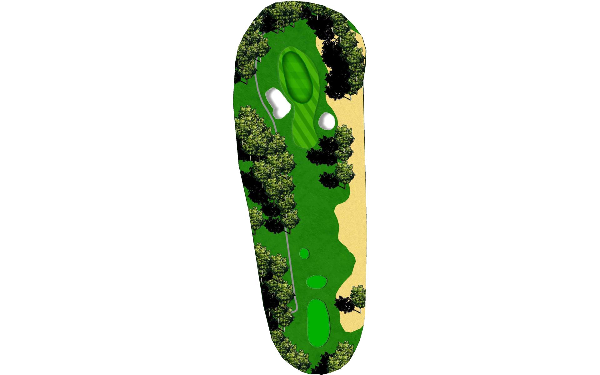 A relatively downhill short par 4. A bunker to the left of a wide fairway comes into play. Avoid the bunker and you will be rewarded with a short approach to a failry level green.